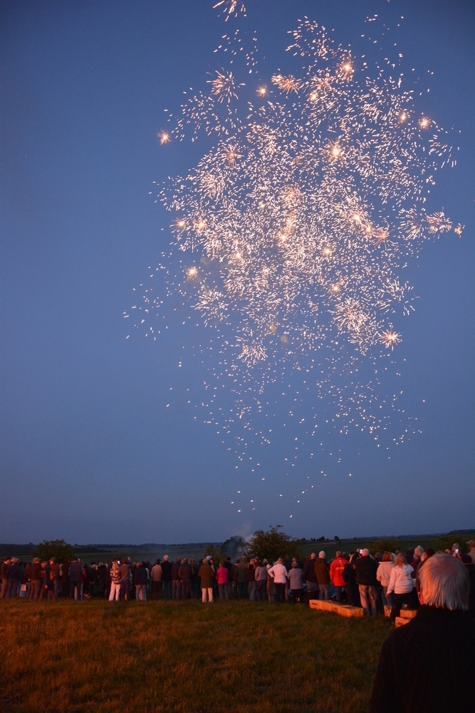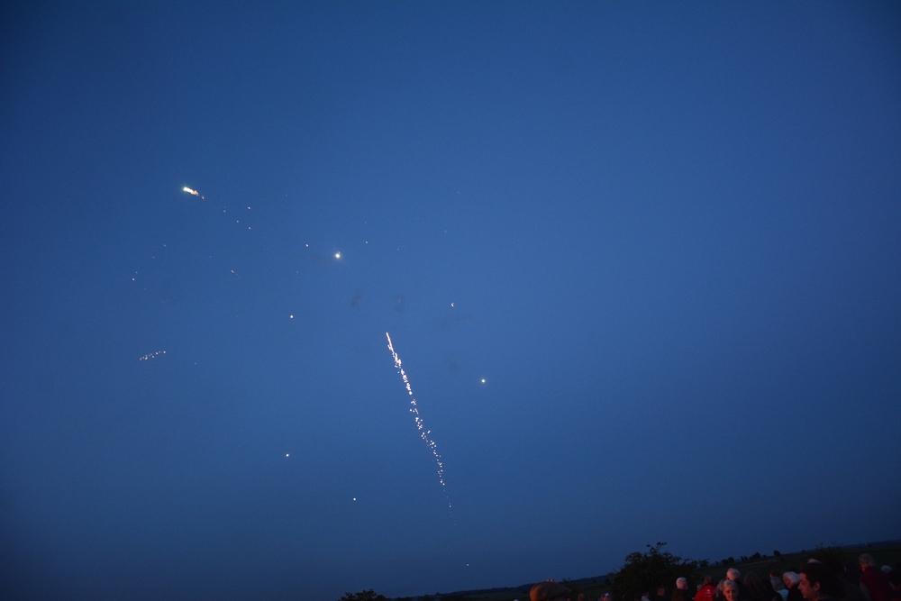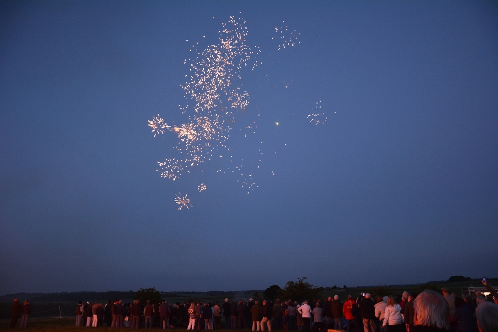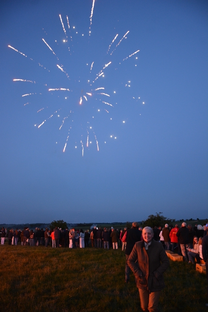 Following the lighting of the beacon, the night sky was illuminated by a spectacular fireworks display. The first rocket, soaring high and bursting into a cascade of light, was dedicated to the memory of Jim Bracey, a much loved member of the Lambourn Community who died recently.