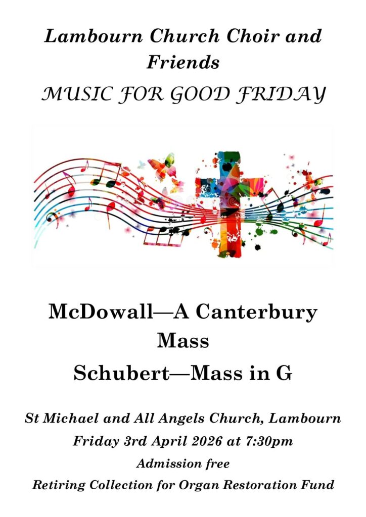 Performed by the Lambourn Church Choir and Friends, the programme features McDowall’s Canterbury Mass and Schubert’s Mass in G. The combination offers a lovely balance of modern warmth and timeless beauty. McDowall’s setting brings a fresh, lyrical clarity, while Schubert’s much-loved work is full of graceful melodies and gentle, reflective moments.