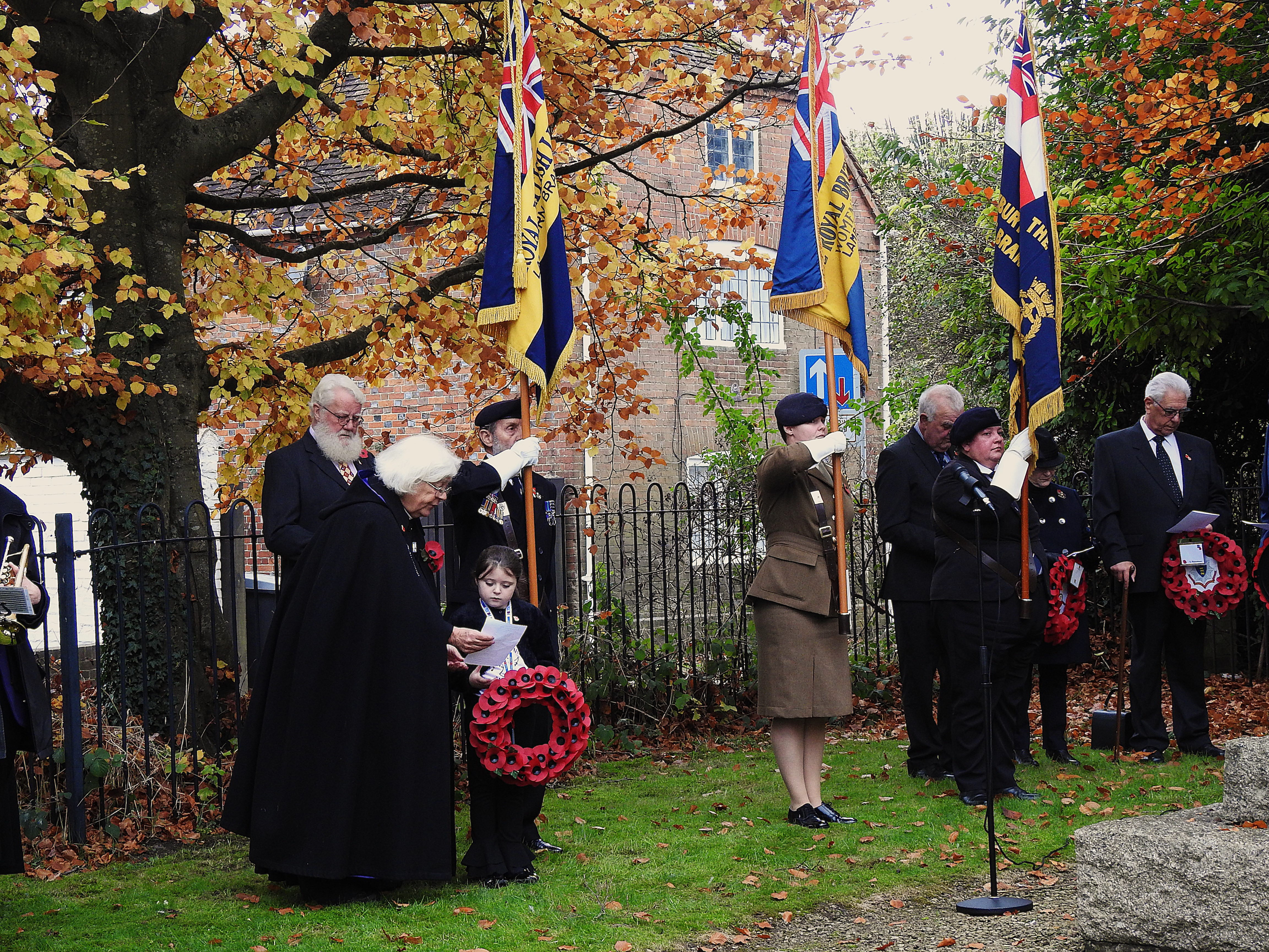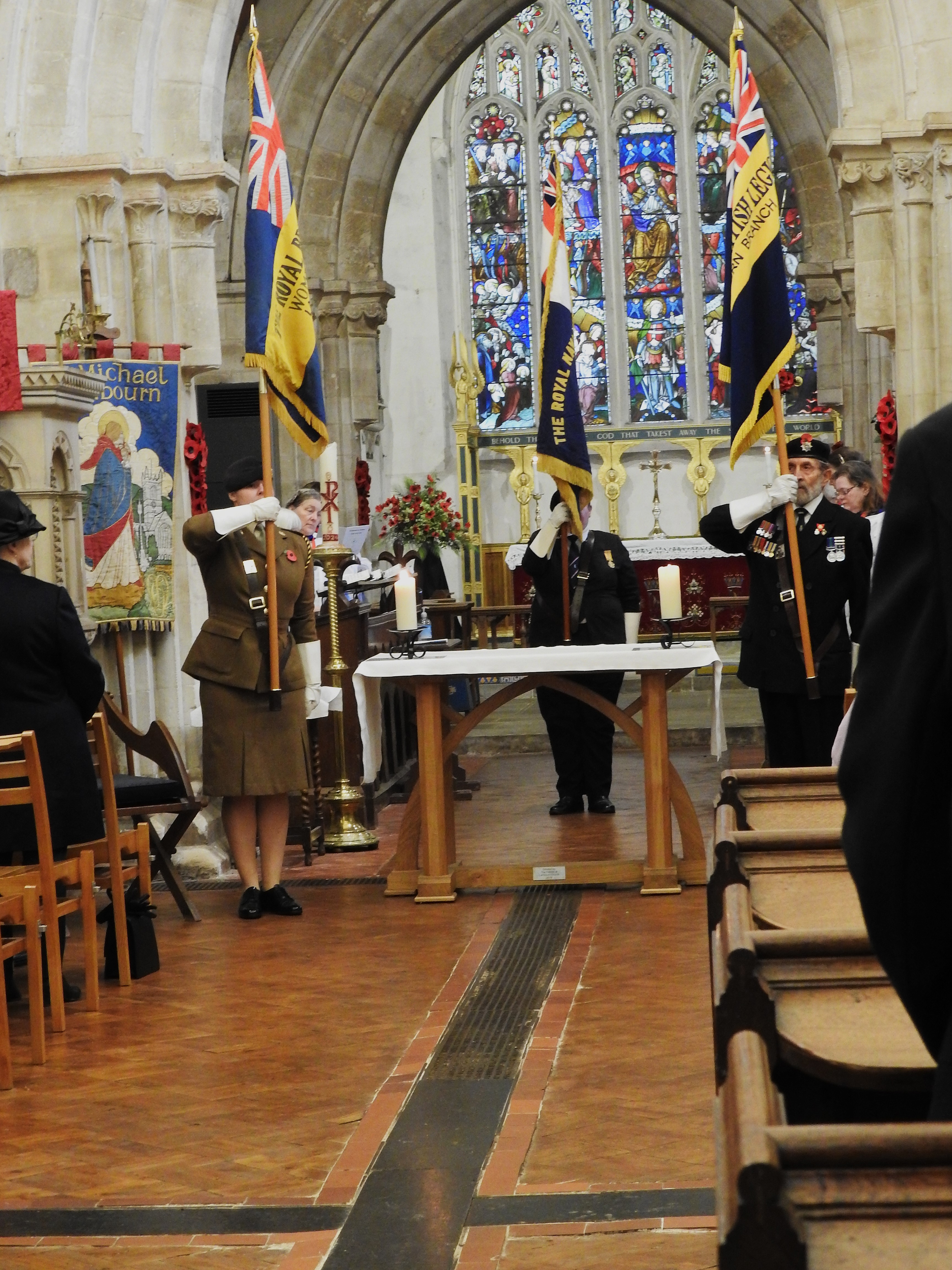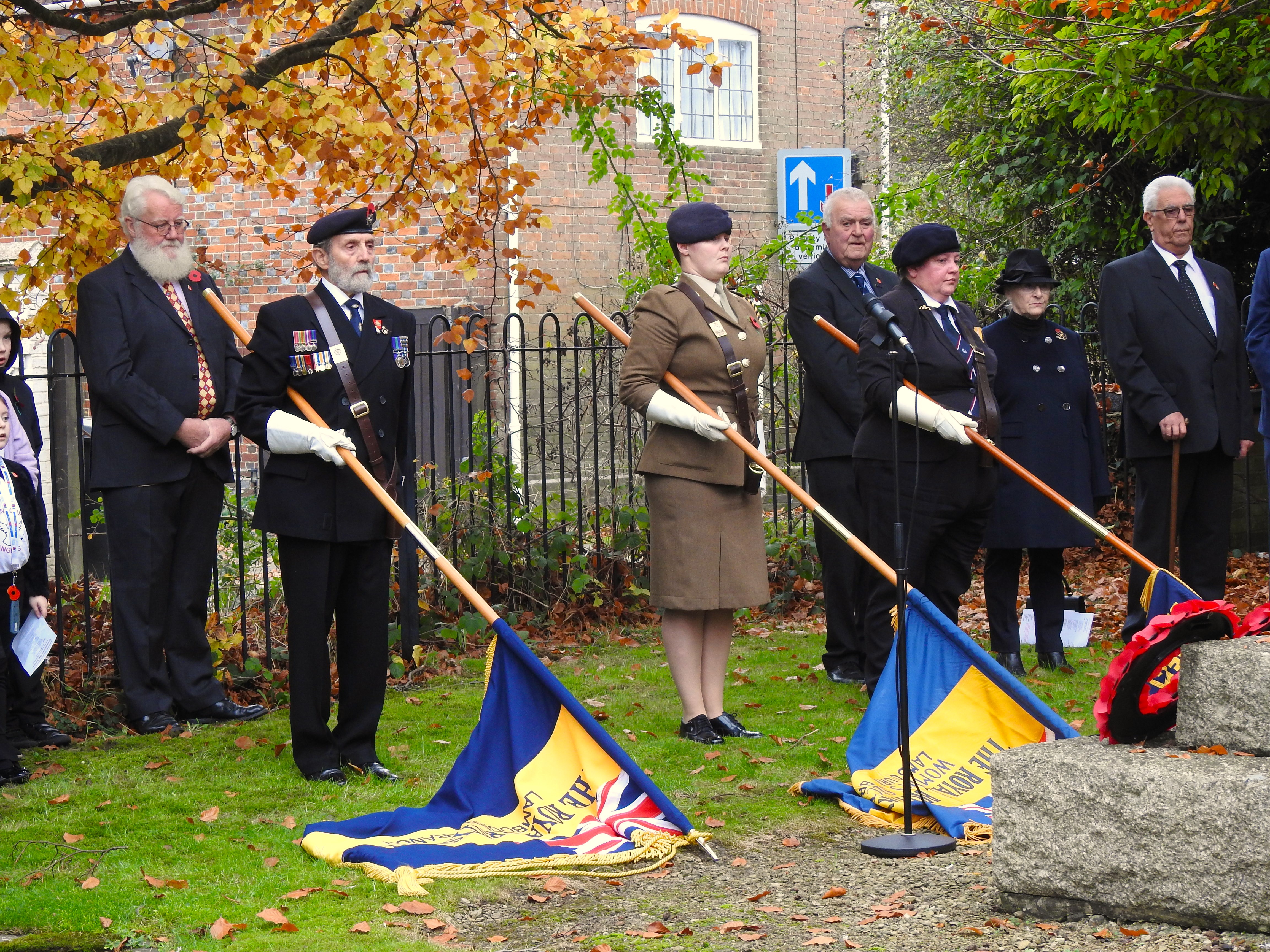 Standards for the British Legion, Women’s British Legion and Newbury Royal Navy Association were carried by John North, Victoria Moxon, Nicola McGuinness.